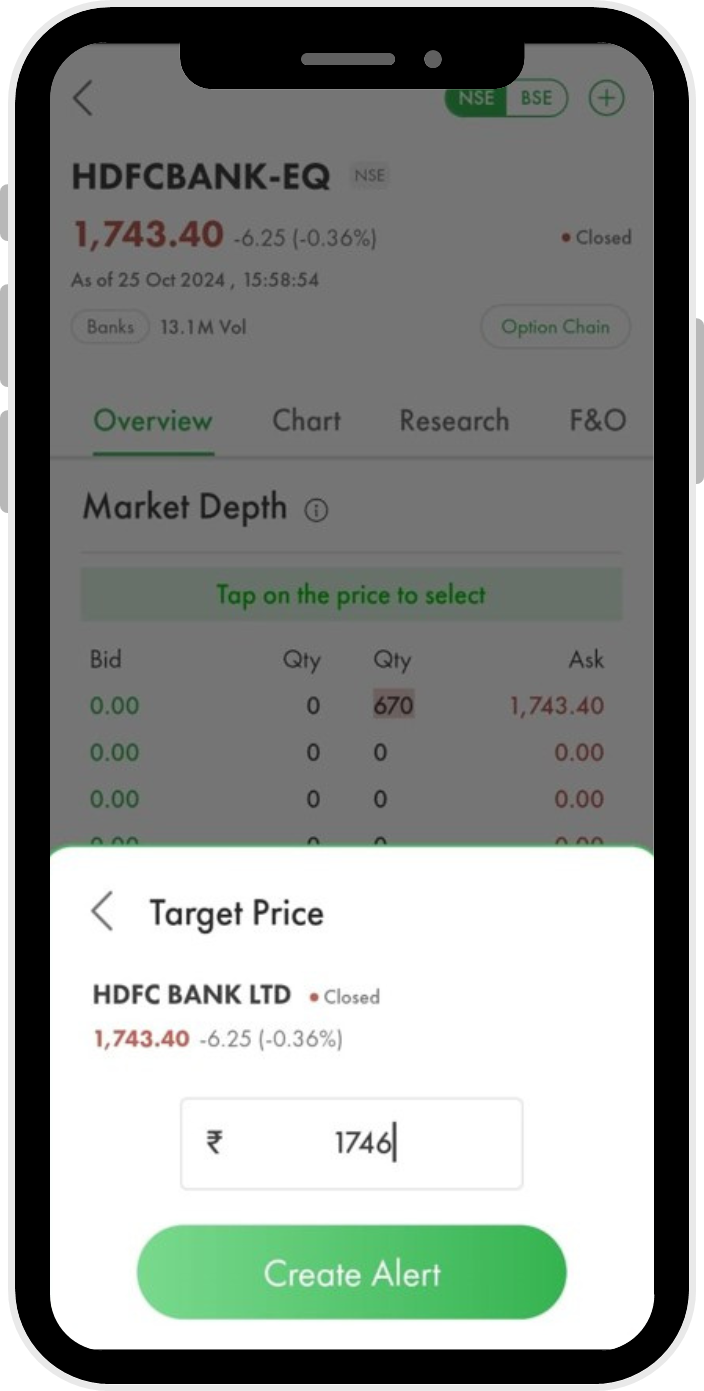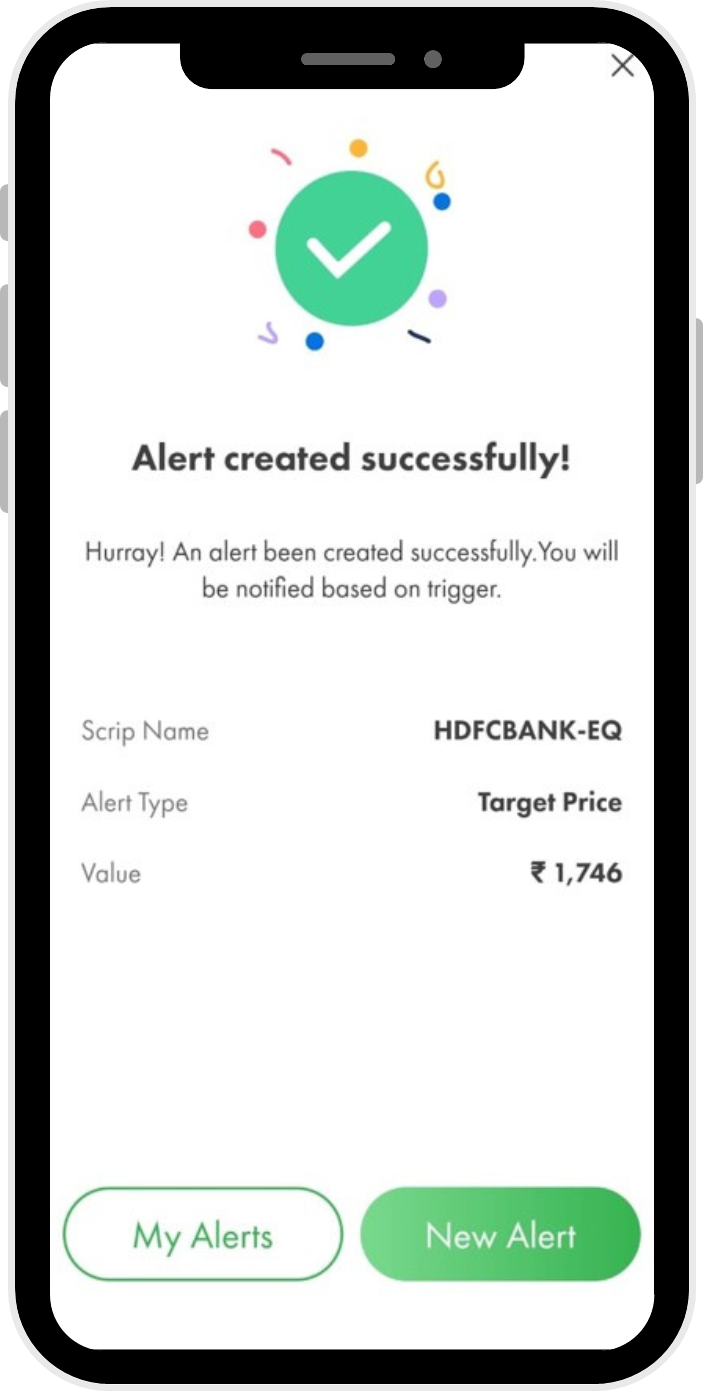 6. For example, selected the alert as Target Price. Entered the price & click on Create alert